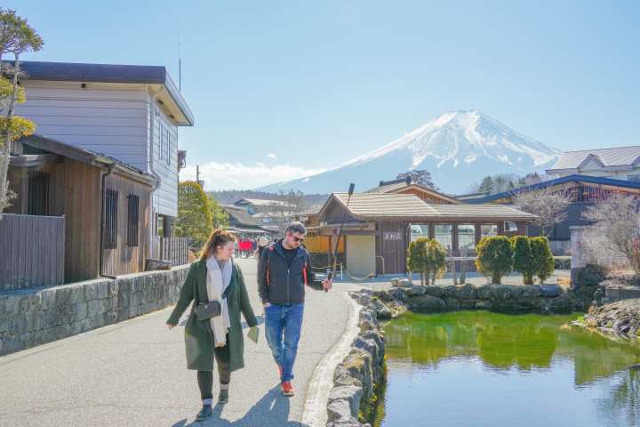 Luego, dirígete a Oshino Hakkai, un encantador pueblo famoso por sus estanques de agua cristalina, alimentados por los manantiales subterráneos del Monte Fuji.