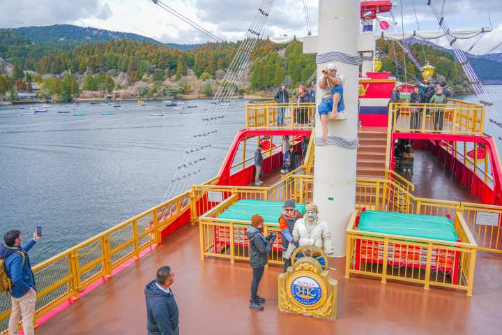 Tu aventura continúa en Hakone, donde abordarás el renombrado Barco Pirata de Hakone (si se selecciona) para un pintoresco crucero por el Lago Ashi. Mientras navegas por sus tranquilas aguas, disfruta de la posibilidad de ver el Monte Fuji reflejado en el lago, si el clima lo permite.