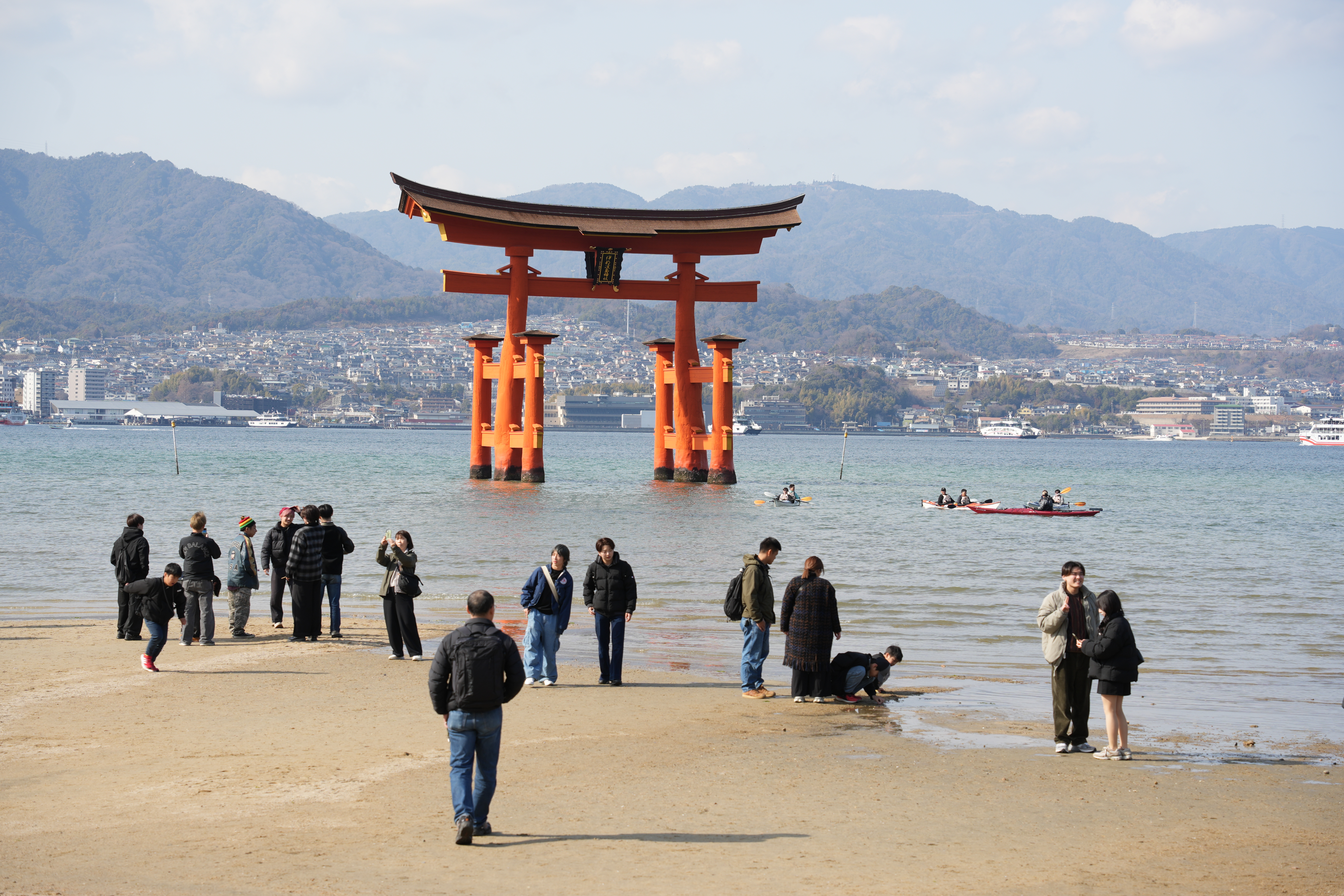Desde la estación de tren, donde te reunirás con el guía, te dirigirás a la costa y abordarás un ferry hacia la encantadora isla de Miyajima. Famosa por su atmósfera tranquila y su impresionante belleza natural, la isla alberga el santuario de Itsukushima, declarado Patrimonio de la Humanidad por la UNESCO. Su emblemática puerta torii flotante, que parece surgir del agua durante la marea alta, es uno de los monumentos más famosos de Japón y ofrece el escenario perfecto para fotos inolvidables.