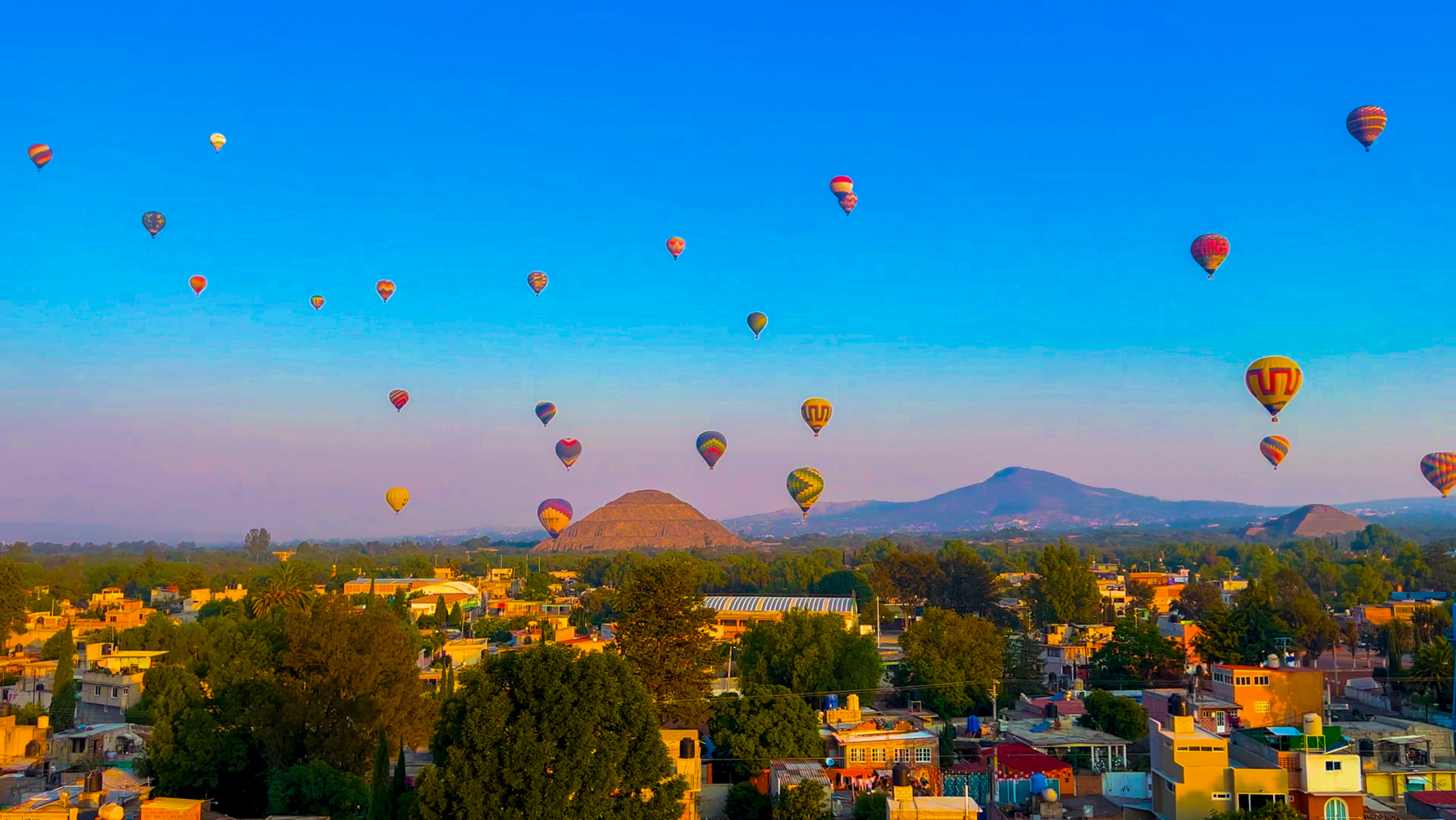 Kick off your journey in style as your private transport whisks you away through the early-morning stillness toward Teotihuacan. Upon arrival at the launch site, feel the buzz in the air as giant balloons inflate around you and the sky begins to glow with the first light of day. After a short safety briefing, it’s time for liftoff!