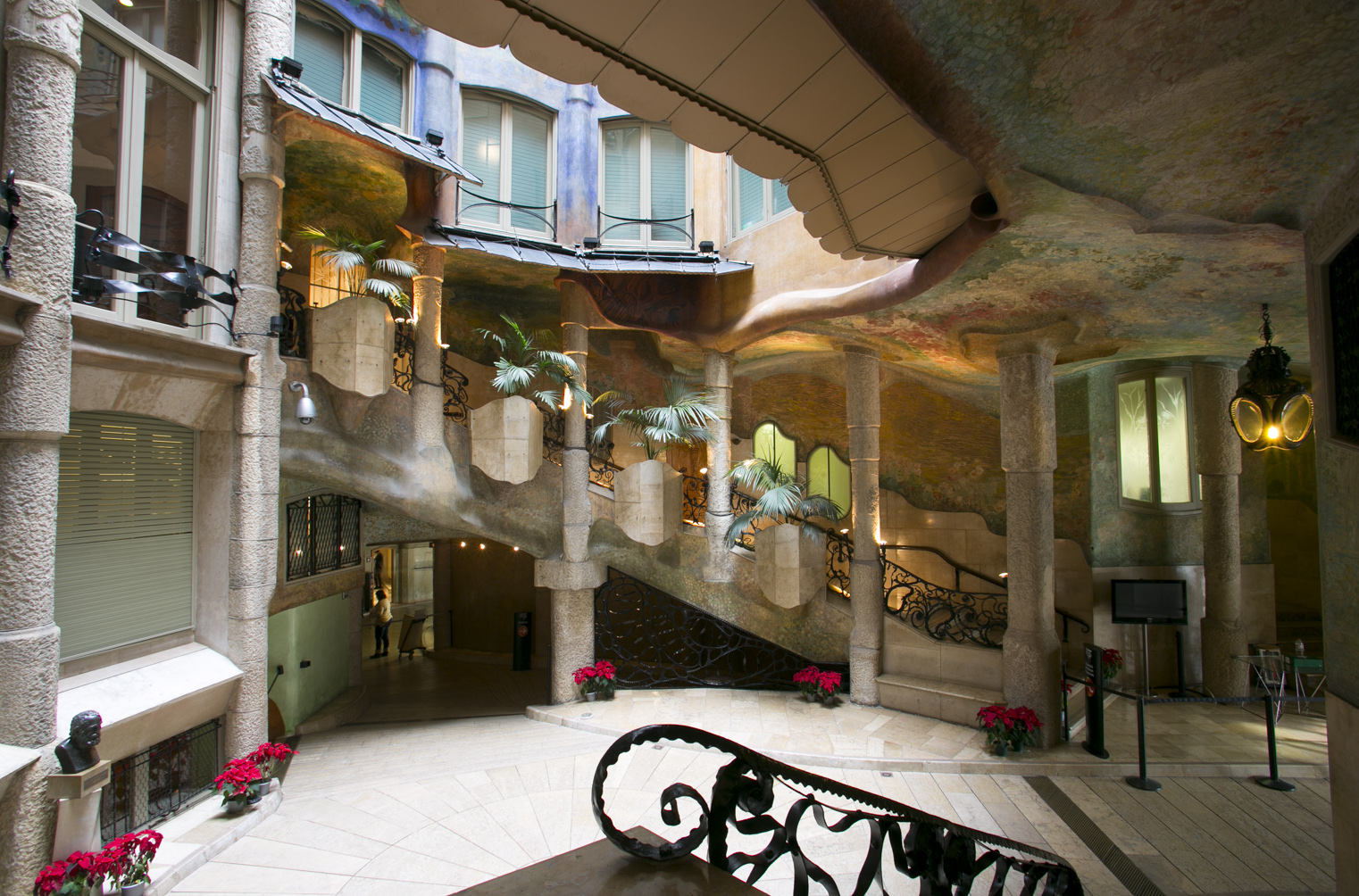 To end this exclusive experience, we will visit Casa Batlló. It belongs too to his naturalist stage, for which he put into practice a whole series of new structural solutions originating from the profound analyzes carried out by Gaudí of ruled geometry.